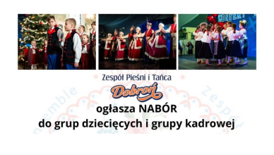 Serdecznie zapraszamy do udziału w naborze do Zespołu Pieśni i Tańca „Dobroń”! Próby Zespołu odbywają się w każdy piątek, w podziale na grupy